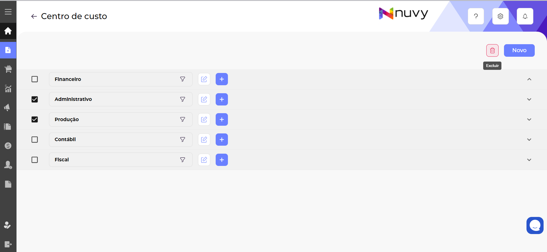 Atualizando o cadastro de centros de custos
