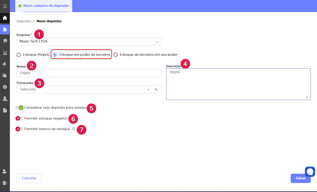 Nota Ao cadastrar sua empresa no sistema, um depósito padrão já é criado. |