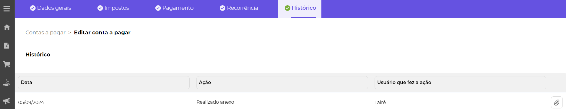 O botão anexar fica disponível somente para contas a pagar que já estão registradas no sistema.