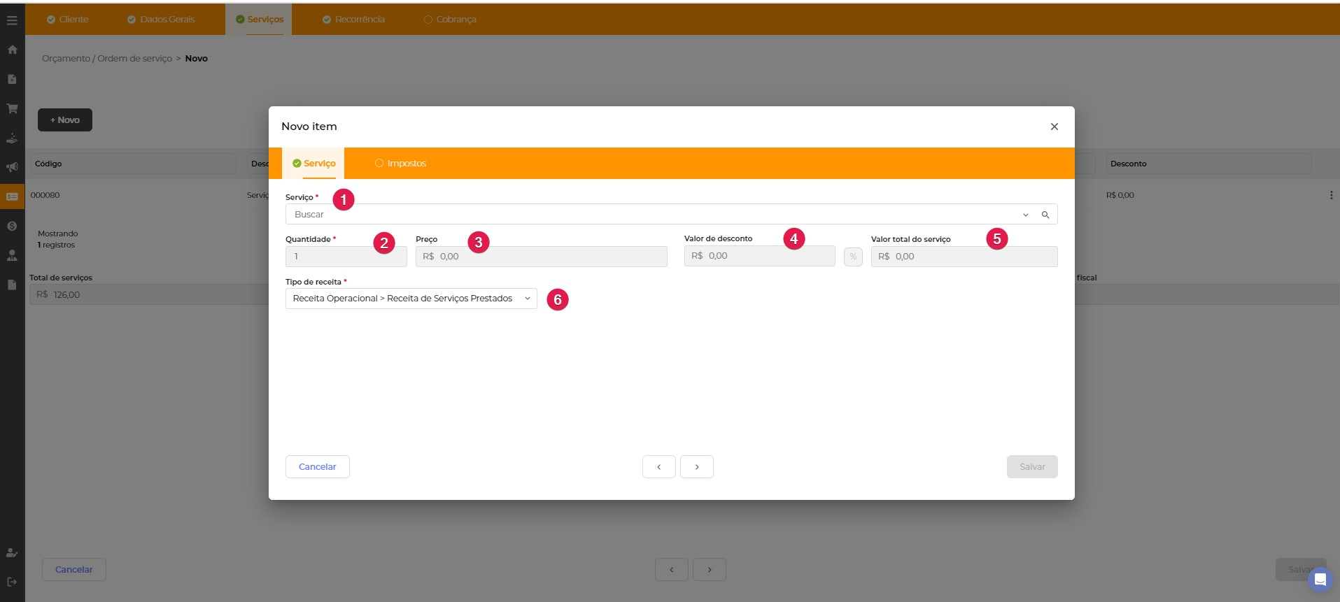 2. Impostos: o sistema irá considerar a configuração realizada no cadastro do serviço.