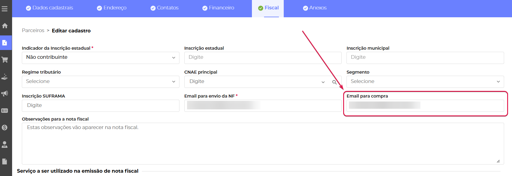Para que a carta de cotação seja enviada é necessário ter um e-mail de compra definido no cadastro do parceiro.