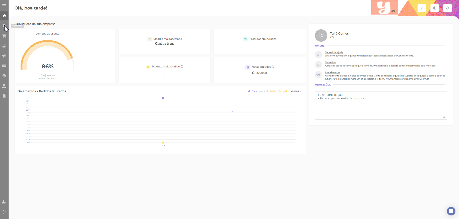 Com isso podemos dar sequência às preferências da sua integração no Nuvy ERP.
