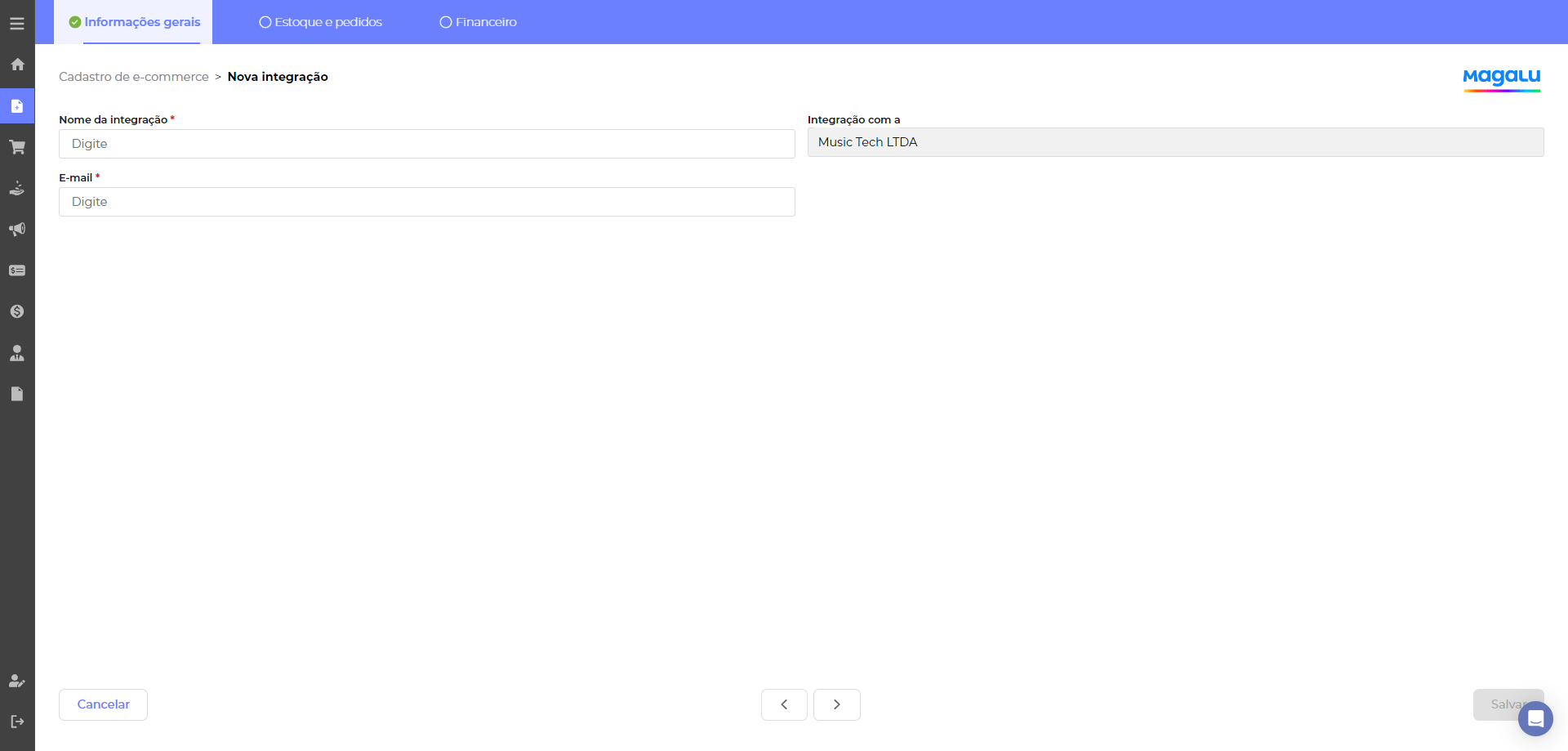 Para começar a configurar sua integração, acesse o módulo Cadastros > E-commerce > Magalu: