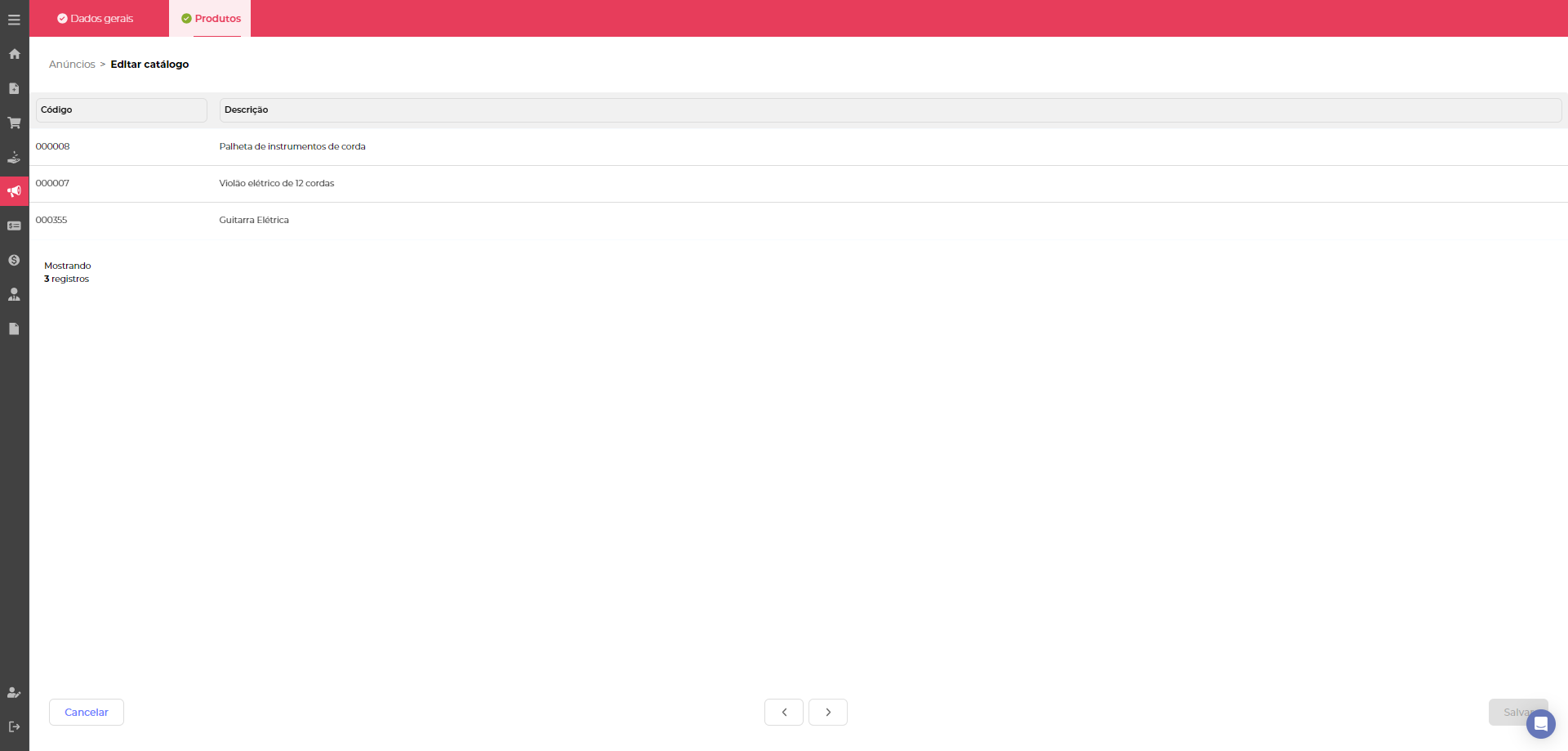 Após salvar e acessar novamente o catálogo, fica disponível uma nova guia de Produtos, onde ficam listados os produtos que constam nesse catálogo.