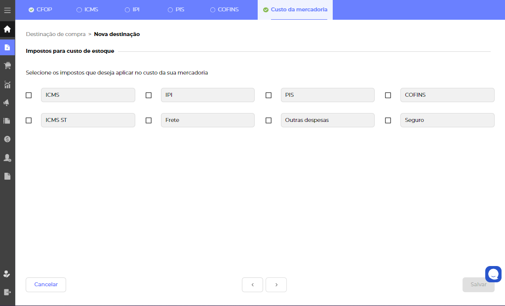No momento de receber uma nota é essencial termos definido o que é considerado ou não no custo dos produtos, pensando nisso é possível já deixar marcado na sua destinação de compra quais são os impostos e despesas que serão considerados no cálculo de custo do seu produto a cada entrada.