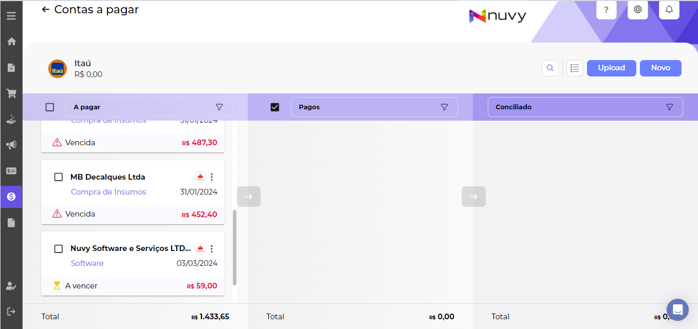 Para facilitar os processos do dia a dia, aqui no Nuvy ERP você poderá encontrar sua fatura direto dentro do seu kanban de contas a pagar.
