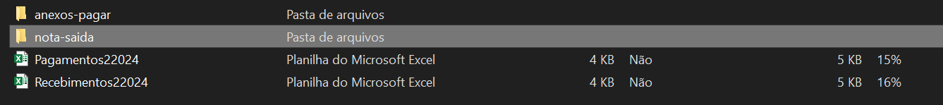Dessa forma em instantes você terá um arquivo que contém uma pasta para suas notas fiscais, anexos de contas a pagar e receber e 2 planilhas com os pagamentos e recebimentos realizados dentro daquele período.