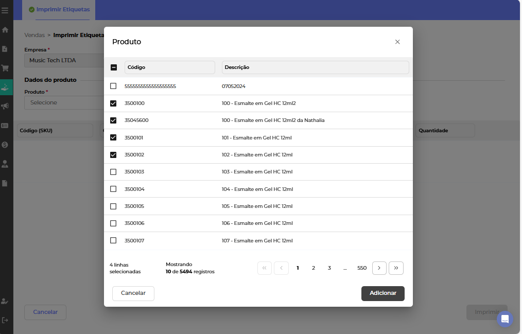 Se necessário, você pode alterar a quantidade de etiqueta por item.