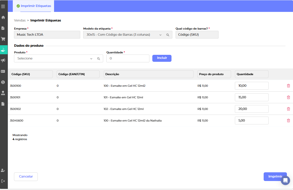 Para finalizar, basta clicar em imprimir para que suas etiqueta sejam geradas.