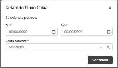 Após selecionar o relatório, basta informar o período e conta corrente desejada.