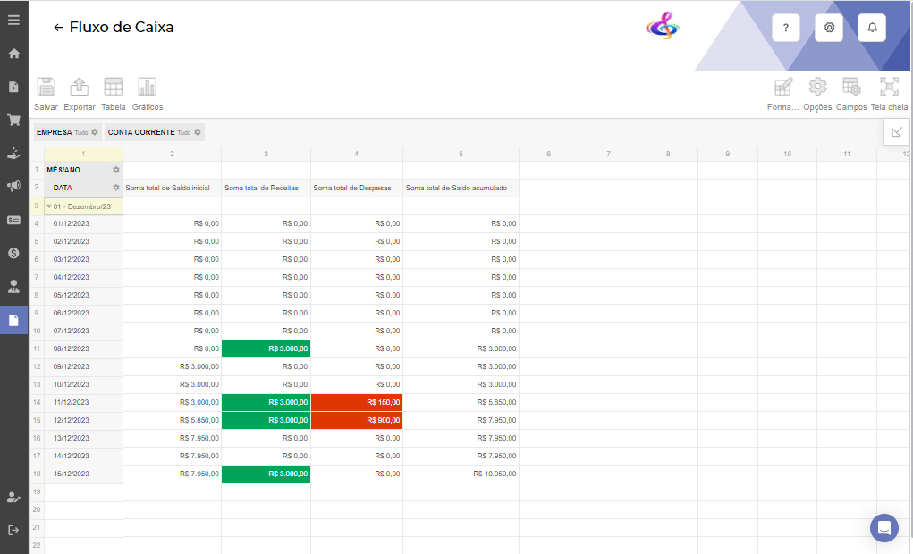 Gerando o relatório de fluxo de caixa