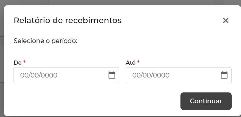 Após selecionar o relatório a ser gerado, basta definir seus critérios informações, nesse caso o alcance de datas das contas recebidas.