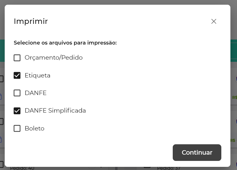 Com os pedidos selecionados basta clicar em baixar/imprimir.