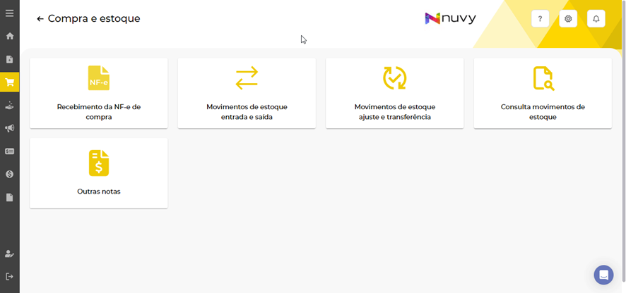 Para realizar a devolução das mercadorias de uma NF-e do seu fornecedor no Nuvy ERP, basta acessar Compra e estoque > Outras Notas > Novo > Devolução de compra